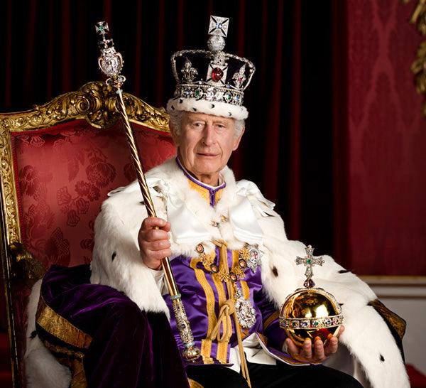 Charles III decided to wear both. At the end of the coronation ceremony, he switched to the less ominous Imperial State Crown, also called the "working crown." He also chose to wear it for his official portrait, shown above. The photo, above, shows the king in full regalia, holding the Sovereign’s Scepter in one hand and the Sovereign’s Orb in the other.