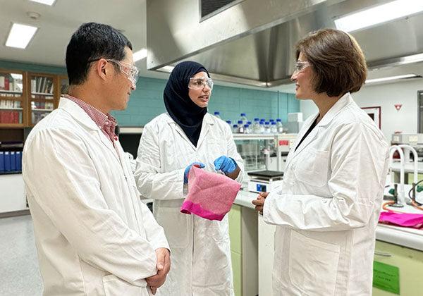 Credits: Photo of research supervisor and senior lecturer Dr. Xin Wang, lead researcher and research assistant Dr. Aisha Rehman and project leader and senior lecturer Dr. Shadi Houshyar by Cherry Cai, RMIT University. Nanodiamonds photo by Cherry Cai, RMIT University.